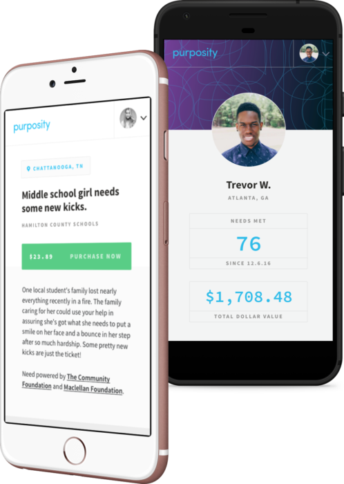 After the social worker adds a short story about the student and his emergent basic need (anything from clothing to school and food supplies), Purposity users receive a text with all that information. If you're interested in donating, with just a few clicks you can quickly check the item out through Amazon and it's sent directly to the student.