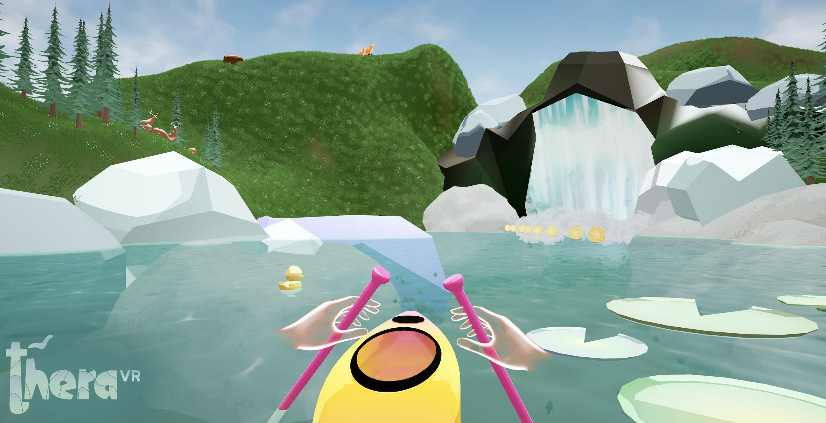 The students worked with doctors, physical therapists, and occupational therapists to develop a fun and motivational VR game with three distinct levels that emulates the different goals of physical therapy sessions. The first level is a balance challenge where kids put on the VR headset and ski down a mountain. The second level is a kayaking adventure that works on strength and endurance, while the third level is a breathing exercise.