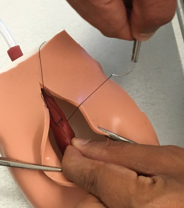Based on the "blood" loss and sutures, students can tell how well they have completed the procedure and be evaluated by an instructor.