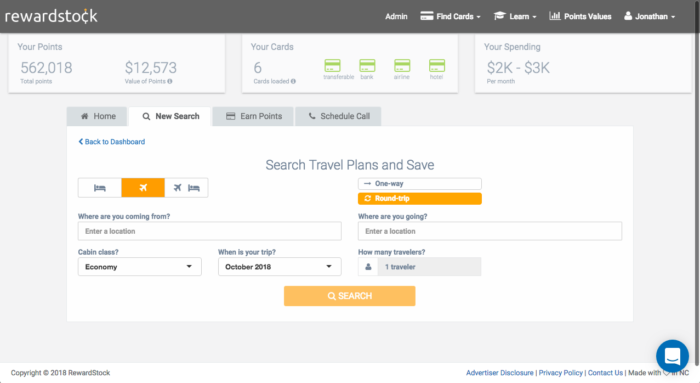 RewardStock analyzes your reward accounts across credit cards and frequent flyer mile programs to find the best way to use them for your next trip. If you don't have enough rewards, their team can offer strategies to help you earn the necessary points.