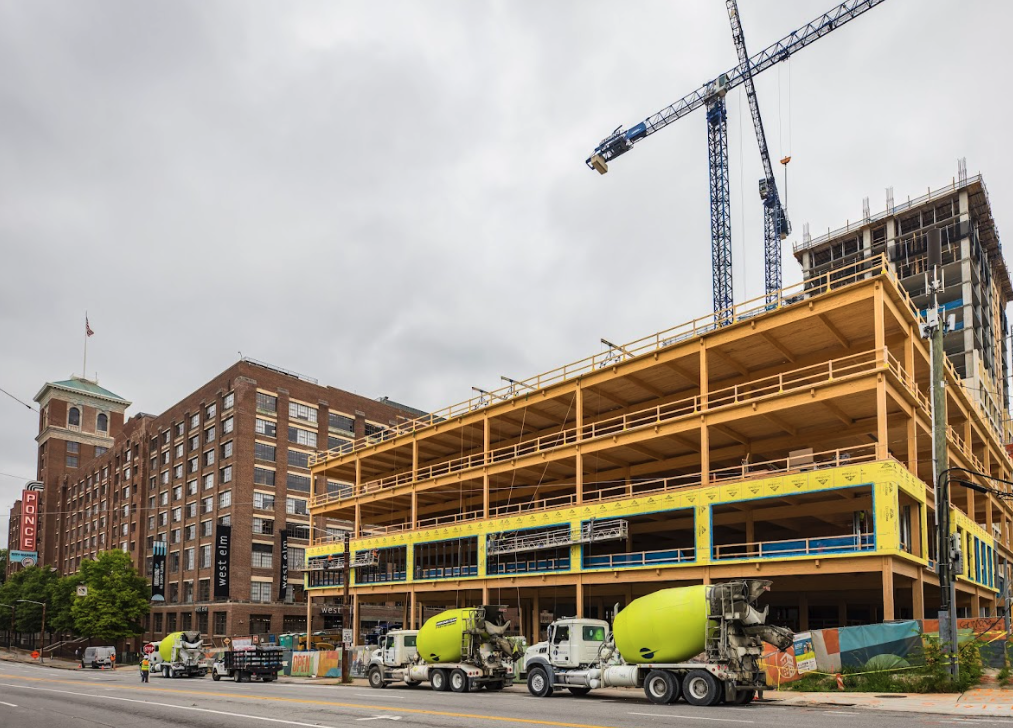 The 619 Ponce development earlier this week “topped out,” a ceremony marking the placement of its last structural beam. Jamestown executives said the beams were made from timber harvested from its own lands near Columbus, cut at Georgia-Pacific‘s sawmill in Albany, then sent to SmartLam in Dothan, Alabama, to be transformed into cross-laminated timber panels. The prefabricated panels help speed up construction and reduce both cost and carbon intensity, the company said.