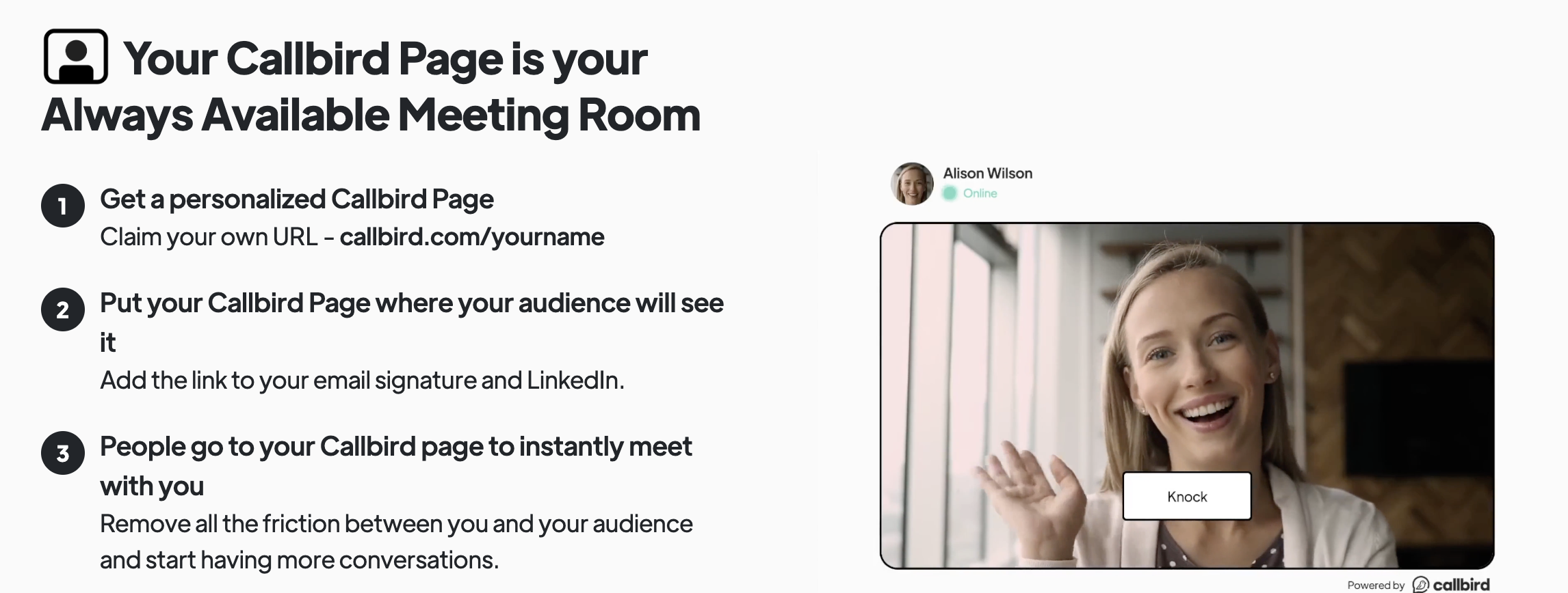 Product-led growth, a strategy in which a company’s features do the “selling,” is central to Callbird’s launch. The startup has made it easy for anyone to claim their personal Callbird page for free to improve the conversation flow with customers.