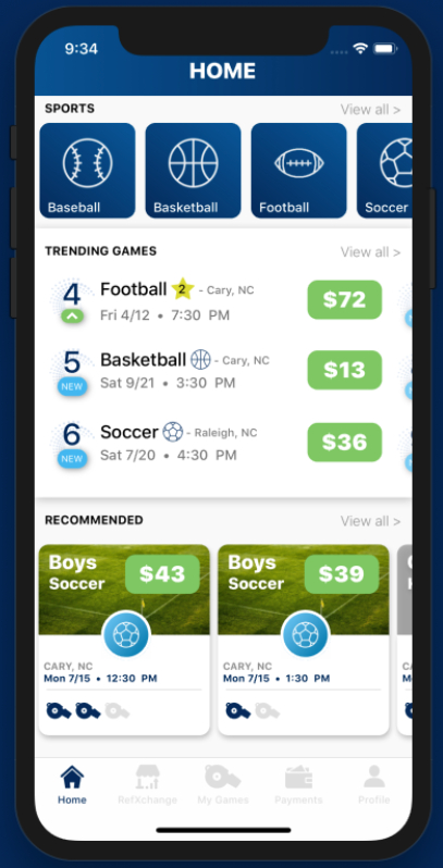 "We've created a powerful recommendation engine so officials see available games tailored to their own history and preferences," he says.