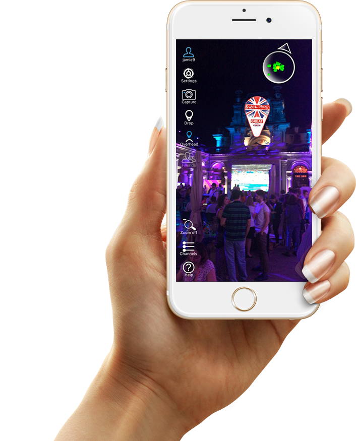 The user opens the app and lifts their phone up to the sky to see virtual AR signposts around them — think an augmented reality billboard. They can also drop a pin to, for example, find their car in a busy parking lot or a friend at a festival — adding a new layer to the social experience without being intrusive. A business can use the app to create info posts for users to find when approaching your business or add fun moments like ChooseATL did at SXSW 2017 by featuring zombies around their activation house.