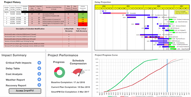 SmartPM's construction data analytics platform taps into the project schedule data and analyzes performance, delays, budget costs, and overall progress of the project. You can see all of the smaller building projects and their status, in one place to help keep everyone on track. Using artificial intelligence, SmartPM also skims through historical performance, possible risks, and feasibility of deadlines.
