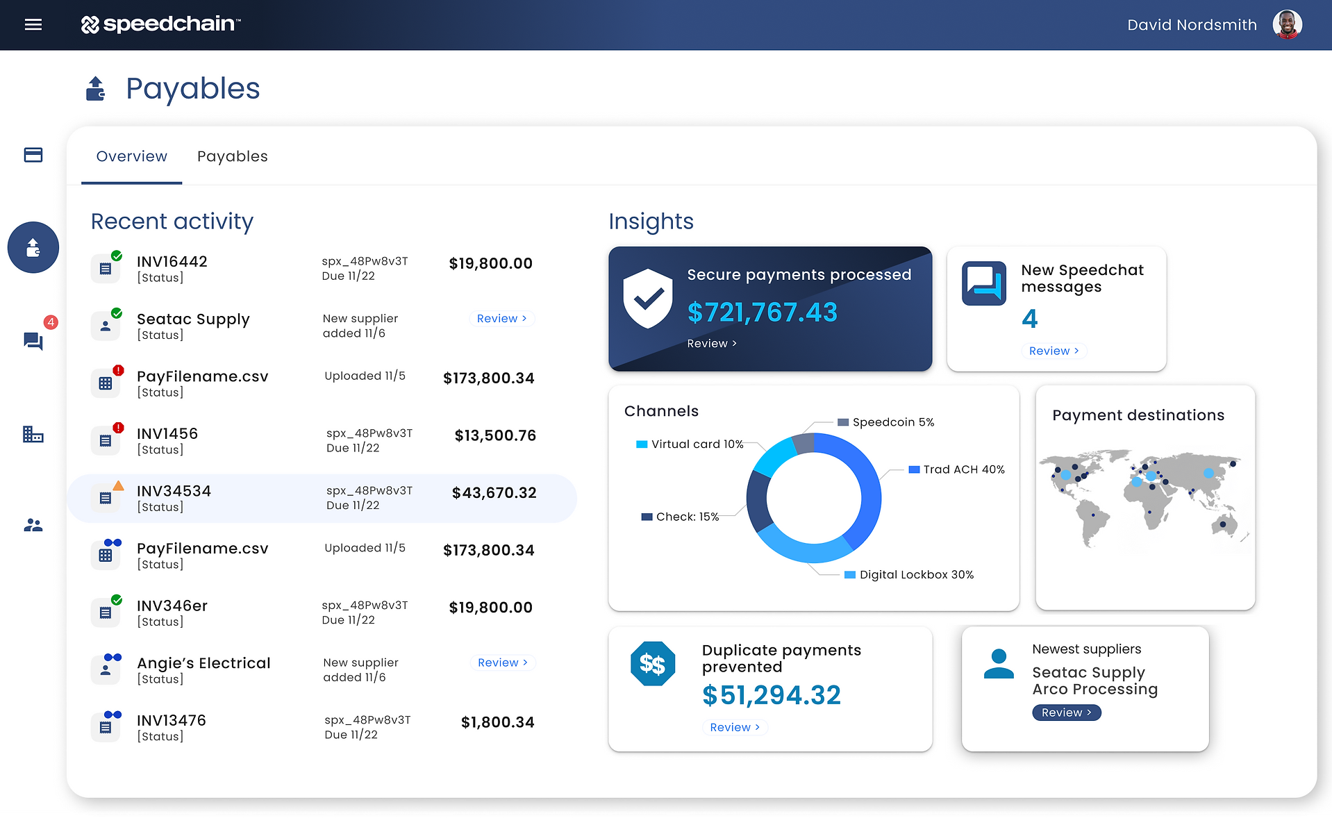 As a growing fintech startup, Speedchain has brought on a mix of data scientists and payments engineers to scale. Team members have come from giants like Accenture, EY, JP Morgan Chase, and Apache, according to Cage.