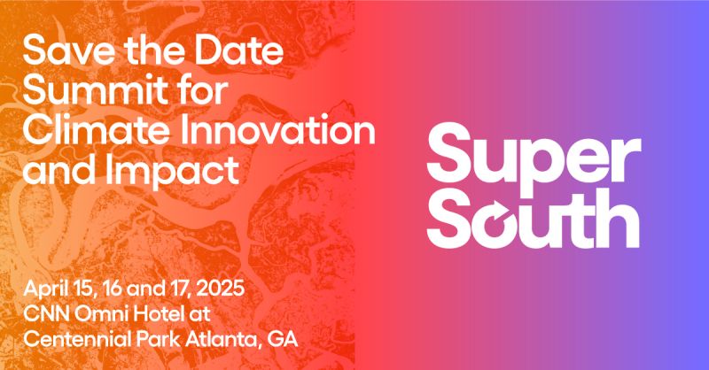 Super South, a climate-tech focused conference, unites global visionaries to drive transformative and resilient solutions. Innovators will converge in the heart of Atlanta, April 15 -17, to mitigate climate risk and catalyze ameliorative impact, celebrating human ingenuity and progress. The conference will feature plenary sessions, breakouts and expo with six vertical and multiple cross-theme presentations and panels.