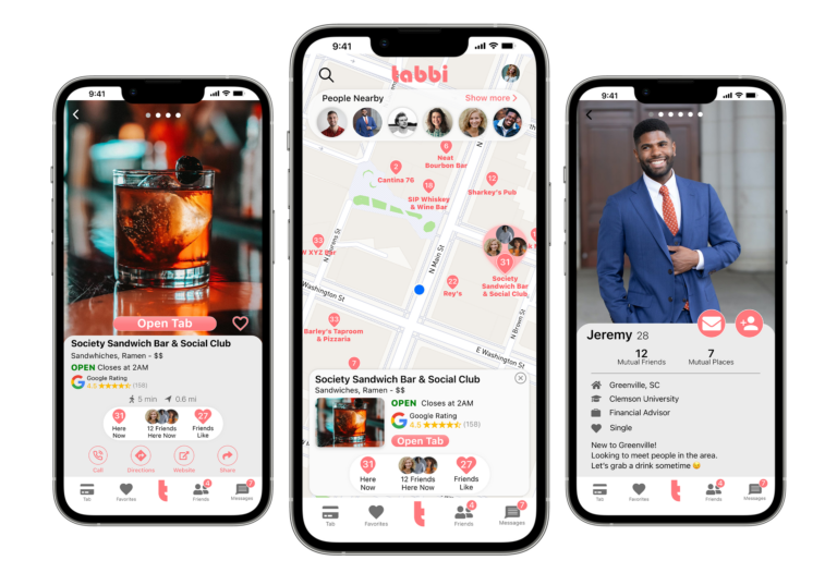 Loflin and Odima founded Tabbi as a social mobile app and fintech platform mixed together, which the team refers to as a “social fintech.” This addresses two main pain points associated with going out for a night on the town: How can you best meet up with someone and how do you split the bill at the end of the night?