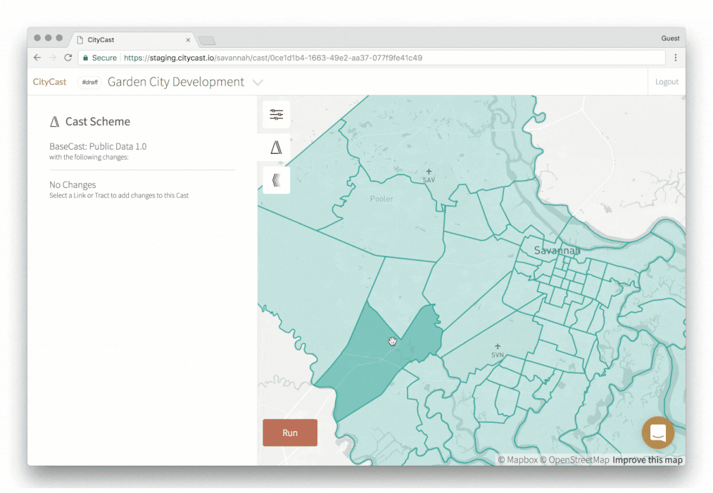 Once a city planner enters their scenario and city, the cloud-based platform runs a simulation and comes back with different data visualizations to see every possible outcome of the change. The user does not need submit any data prior to using CityCast, since the platform draws from a mix of data sources that the user can combine in order to build their simulation.
