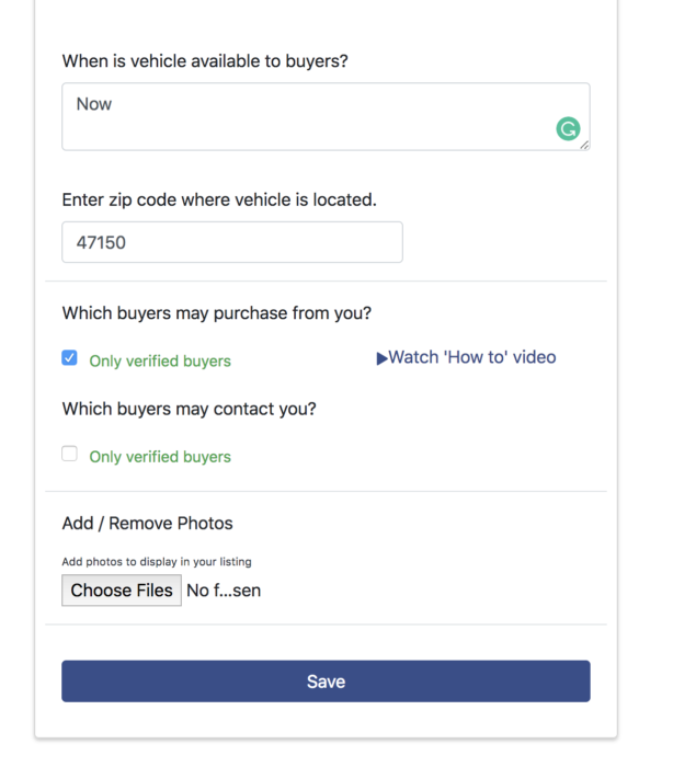 The seller first creates a listing with photos of the vehicle and basic details. The listing also comes with a customizable checkout page.