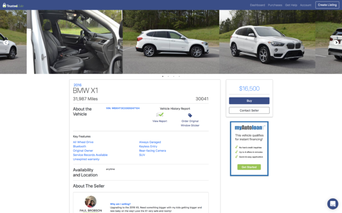 Trusted.Sale promotes the listing on your behalf in up to 150 marketplaces and classified sites for free, or the seller can use the link to promote it themselves. This feature takes away the pain point of constantly updating multiple listings and keeping track of interested parties across sites.