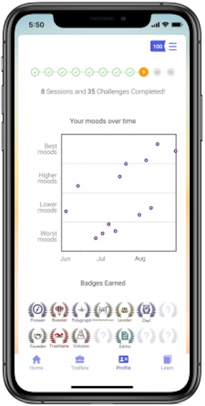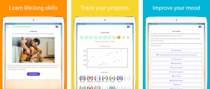 Uplift is the first consumer-grade CBT-based app. Once users download the app or create a profile on the web-based platform, they are led through 12 “Sessions” which mimic the flow of a course of CBT therapy.