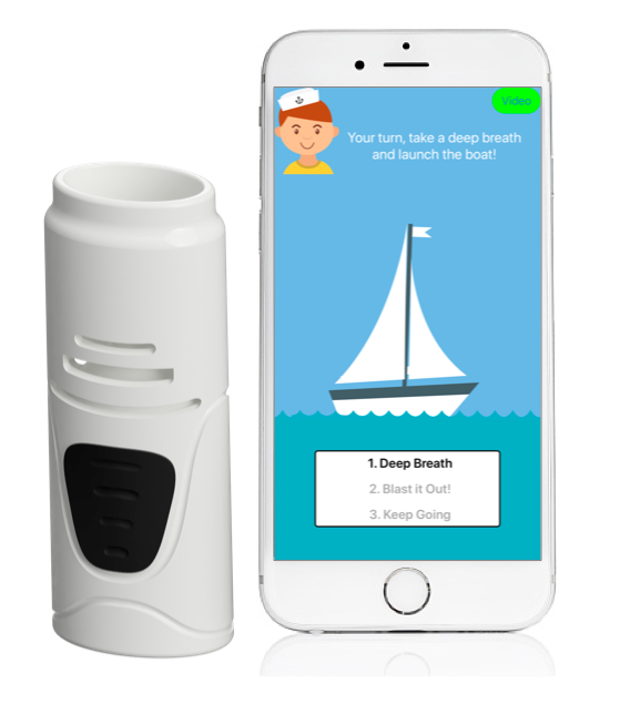 VitalFlo gathers data in three distinct ways. First, it uses its proprietary, self-powered spirometer to capture lung function three times a day by measuring the flow of an exhale and syncing the breathing measurements with the smartphone app automatically.