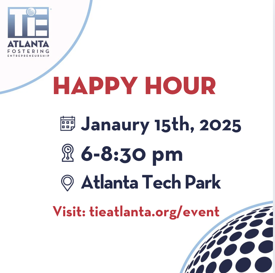🎉 Get into the holiday spirit with TiE Atlanta at our Holiday Party Happy Hour! 🎅 Join us as we toast to the season and good times ahead! Attendees will have the opportunity to network and connect with the individuals and groups that comprise ATL’s vibrant entrepreneur community and TiE Atlanta mentors. Register here!